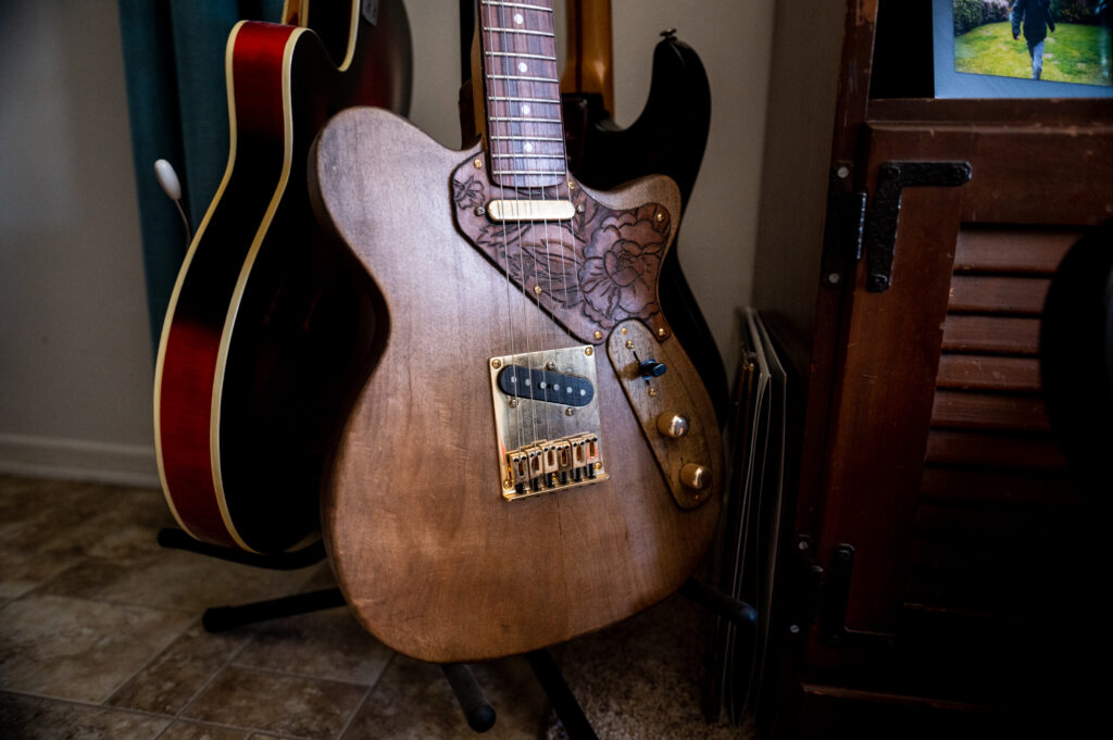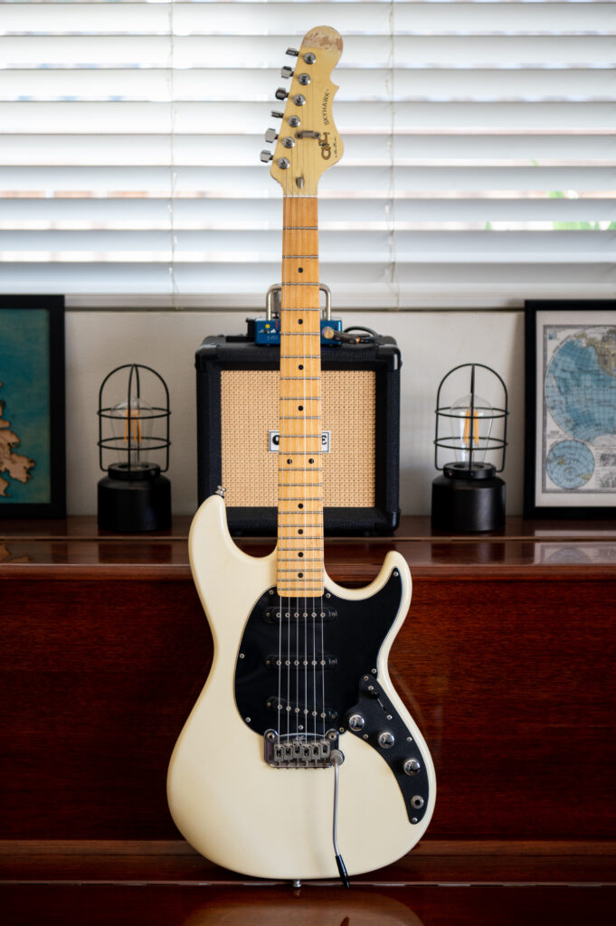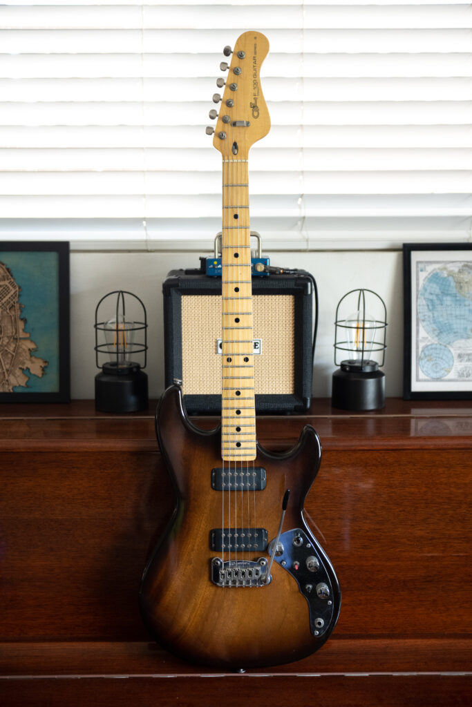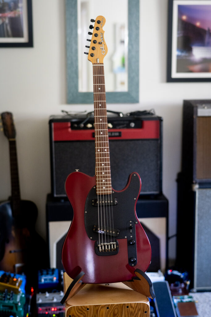 I probably get more comments on this unassuming guitar than any other. There is something about the simplistic ASAT look coupled with that faded maroon body that just works. This is often my go-to guitar. It plays perfectly and will make everything sound better. I found this on the wall at The Guitar Shoppe in Laguna Beach. Played it and couldn’t put it down. I checked the serial number and it came up with an email address. I spoke with the gentleman, and it turns out that this was one of Dale Hyatt’s favorite guitars in 1988. I still don’t know whether it was a custom order with that color, or something he had built for himself, or just a really special off the line guitar. But when G&L was going through their lawsuits, this is the guitar the lawyer who represented them bought, on the day he and Dale hit it off, Dale realized he was a lawyer, and asked him for representation. So kind of a cool history to this one too. The lawyer owned it for three decades and then finally moved states circa 2020 and pawned this to the Guitar Shoppe in Laguna.