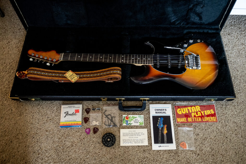 This was a pawn shop find. In almost untouched, straight out of the dealer in 1986, condition. Guitar is perfect and seems unplayed, hang tags, price, receipt, strap, case candy, delaer candy, unopened 1986 strings, it’s perfection. It’s like it’s 1986 when you open this thing. I could not believe my eyes. Got a decent price because the owner of the pawn shop said it didn’t play well after he set it up and believe him he knows guitars, and then every single string was in the wrong spot. And not just one off, like all over the place. Changed the strings, gave it another setup, and it’s gorgeous in every way.