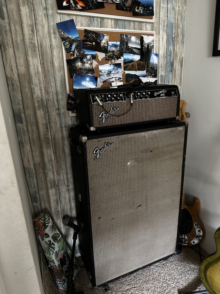 1966 Fender Bassman blackface with 1967 15×12 cabinet 15” 1973 Eminence and 12” Oxford